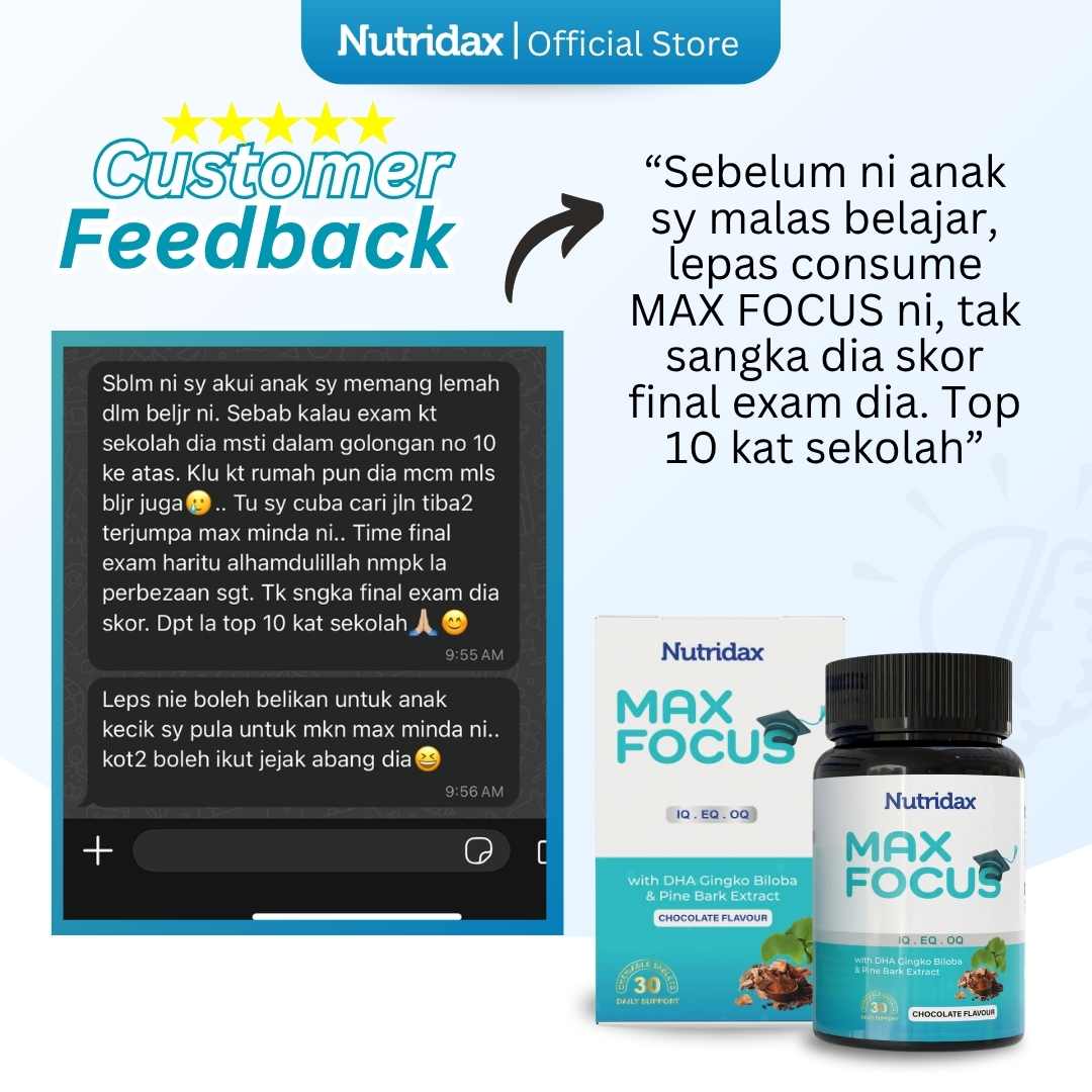 PERCUMA 1 BOTOL NUTRIDAX MAX FOCUS BERNILAI 40 SGD!